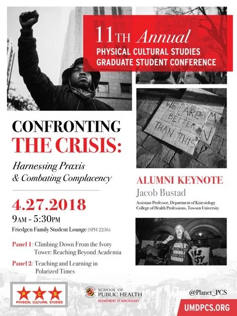 In lieu of our annual graduate student conference, we hold this space to grapple with all that continues to unfold in front of us. As opposed to festering in our looming concerns, frustration(s), and/or rage, we hope to find strength within our respective academic community/ies, being tactful and forward thinking for ourselves and the like-minded collective. Featuring a keynote presentation by PCS alum, Dr. Shaun Edmonds, panels featuring PCS network members and UMD Kinesiology and School of Public Health faculty and staff, and a graduate student fireside chat, we invite you to join us in critical discussions pointed toward mass-polarization, mischaracterizations of “woke” ideologies (and the implications thereof), and strategic collectivity amid growing regulation of higher education.